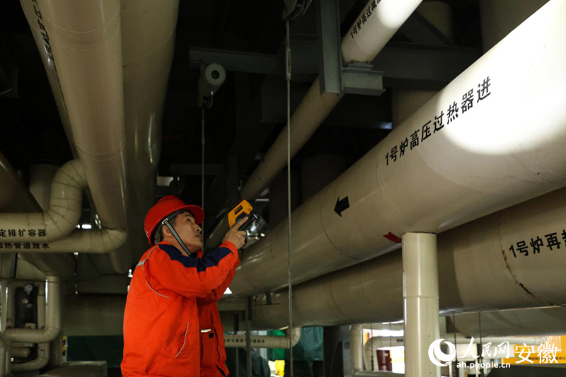 下午两点整,皖能合肥天然气调峰电厂,张险峰扣上安全帽,沿着钢铁阶梯向三十三米高的锅炉汽包平台走去,这已经是他当天第二次踏上这条路线。